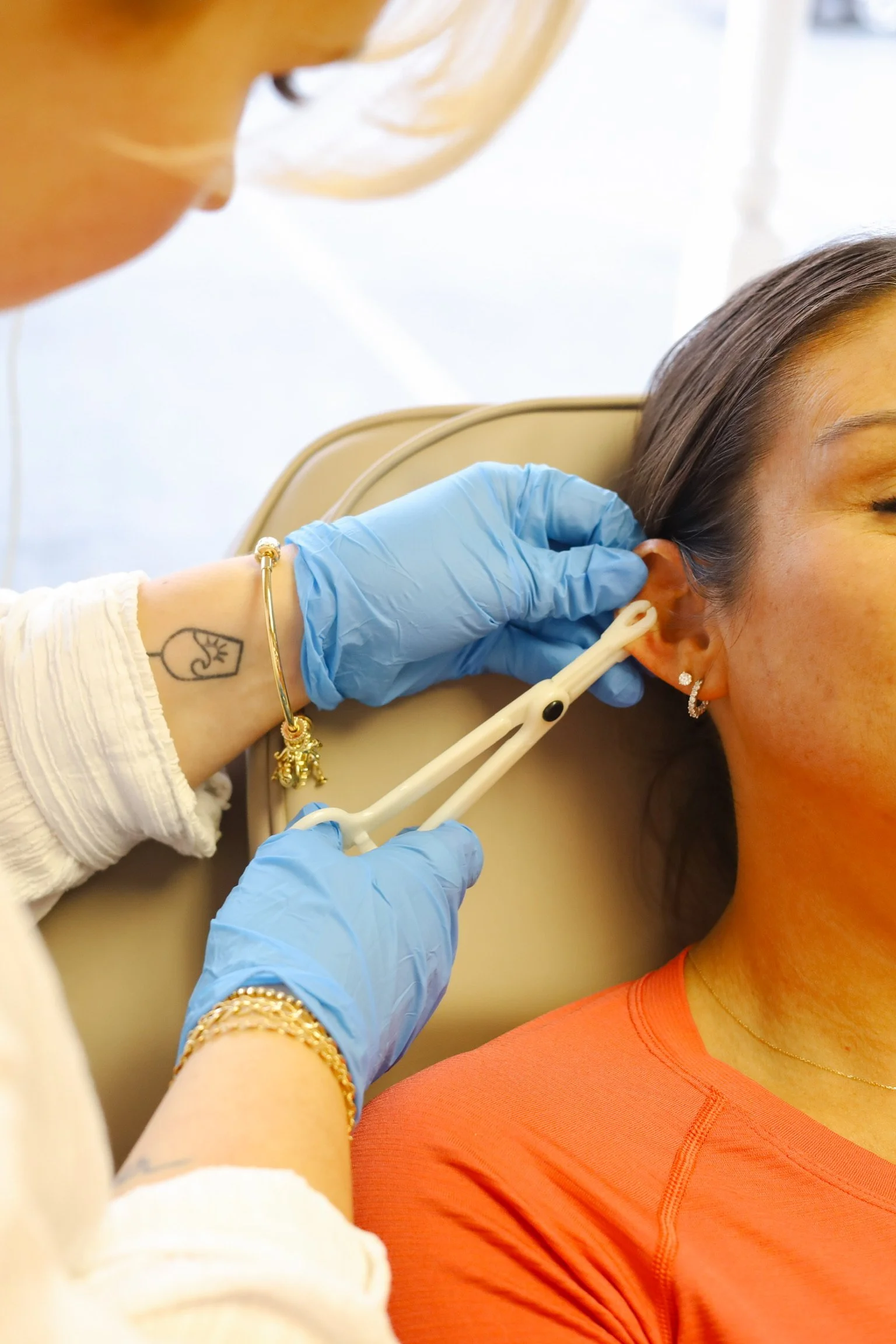 We offer ear piercings for anything on the outer ear, including forward helix and tragus piercings. We carry both gold and silver flat back piercing earrings to fit everyone’s style.